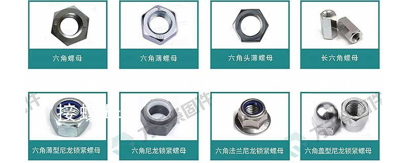 六角法蘭面螺栓的頭部由六角頭和法蘭面兩部分組成,其“支撐面積與應力面積字比值”要大于普通六角頭螺栓,故這種螺栓能承受更高的預緊力,防松性能也較好,因而被廣泛用于汽車發動機、重型機械等產品上。六角頭頭部帶孔、帶 法蘭面螺母(GB6177/DIN6923)、法蘭面螺母尼龍鎖緊螺母(DIN6926)、四角焊接螺母(DIN928)、六角焊接螺母(DIN929)、蝶帽(GB62、DIN315、美制)、K帽等。2、合金鋼國標螺母的標準尺寸為5/16-4"。合金鋼國標螺母