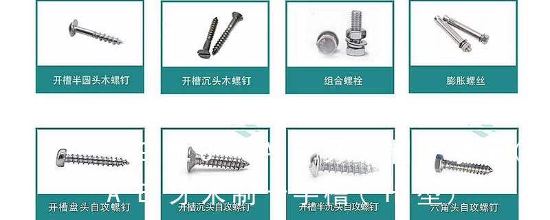 自切自攻螺釘有以下幾種型式:十字槽盤頭自切自攻螺釘,十字槽沉頭自切自攻螺釘。十字槽半沉頭自切自攻螺釘,六角頭自切自攻螺釘。3、自擠自攻螺釘(自攻鎖緊螺釘)自擠自攻螺釘的螺紋一般為機螺紋,很少采用自攻螺紋。在扳擰 ④頭型 :用字母來表示頭型的種類,可參看前文常用螺釘頭型分類。 ⑤牙型/尾型 : 用字母來表示牙型/尾型的種類,可參看前文“常用螺釘牙型/尾型分類”。 ⑥槽型 :參看前文“我司常用螺釘槽型分類”,十字槽或無槽(如沖六角頭